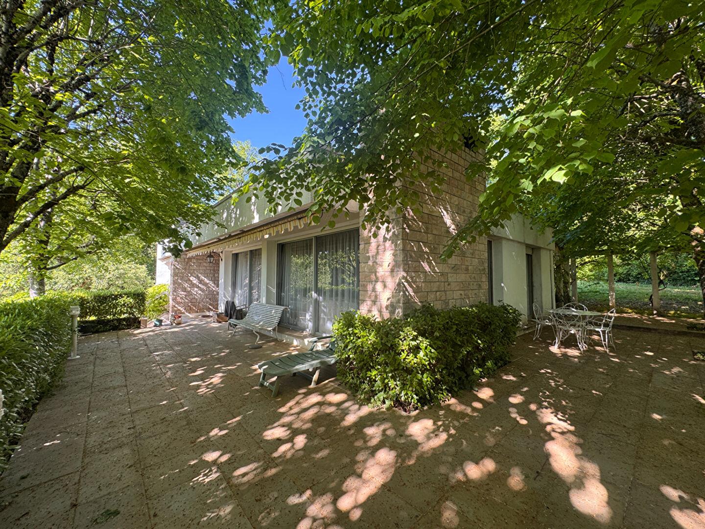 REFERENCE ANNONCE : MAIS131 - Située à environ 5 minutes du centre de Figeac, maison à toit plat des années 80 d'environ 130 m² sur plus d'un hectare de terrain en partie boisé. L'accès se fait par un escalier extérieur, entrée donnant sur salon/salle à manger d'environ 32.71 m² avec cheminée ouvert...