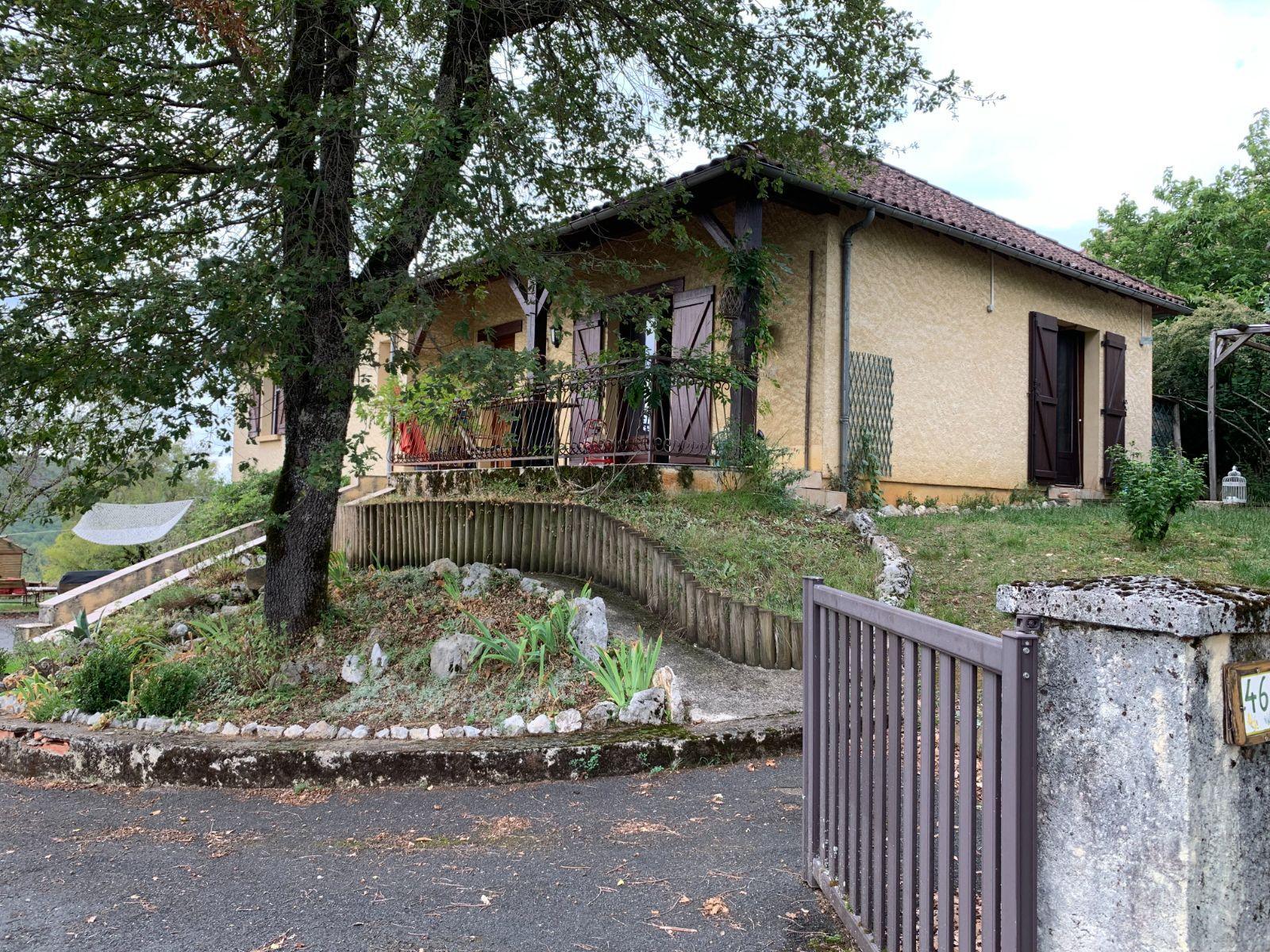 REFERENCE ANNONCE : 46041/441 - A VENDRE : Maison contemporaine de plain-pied sur sous-sol, en bon état et située sur 3.427m², en campagne proche village avec commerces, au sud de GOURDON (Lot 46), comprenant en rez-de-chaussée : entrée, cuisine, salon-salle à manger avec cheminée insert (35m²), cou...